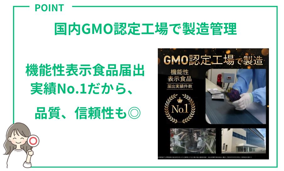 サプリは国内のGMP工場で製造されており、品質も良く安全にも配慮した商品です。